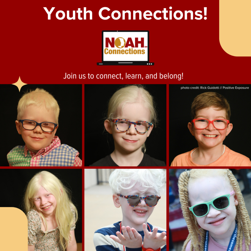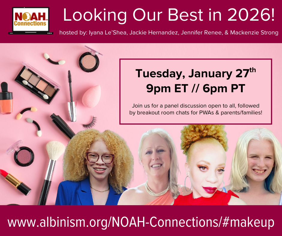 Inspired by our early pandemic “Social Distancing with Friends” series, as well as the heart-warming connections created during #VirtualNOAHCon2020, NOAH has been offering virtual opportunities for our community to connect through NOAH Connections for nearly 6 years! As we approach 2026, we’re excited to share an updated approach — designed to make it easier than ever to connect, learn, and build meaningful relationships within the albinism community.