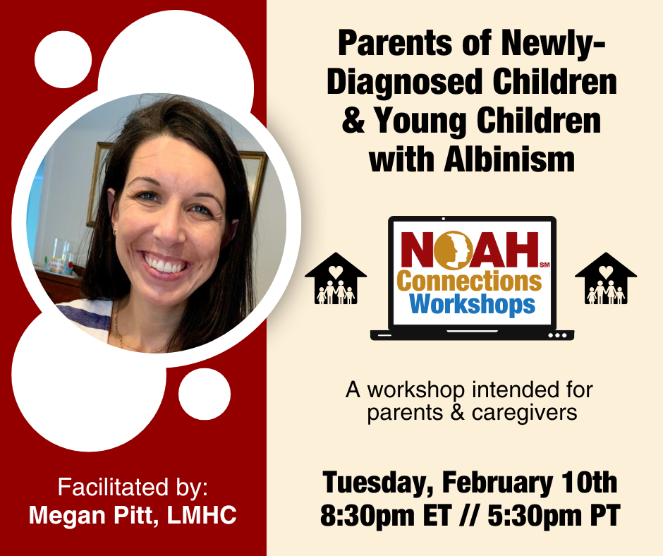 - Tuesday, February 10th – Workshop for Parents of Newly-Diagnosed and Young Children with Albinism