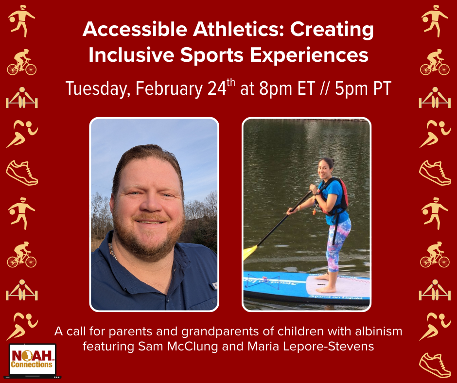 Parents & grandparents of children with albinism – join Sam McClung & Maria Lepore-Stevens for an exciting discussion about accessible athletics!