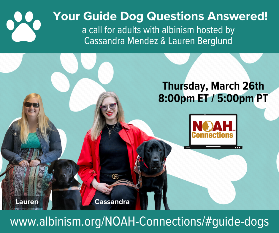 Adults with albinism: join Cassandra Mendez & Lauren Berglund as they share their expertise and experiences with guide dogs!